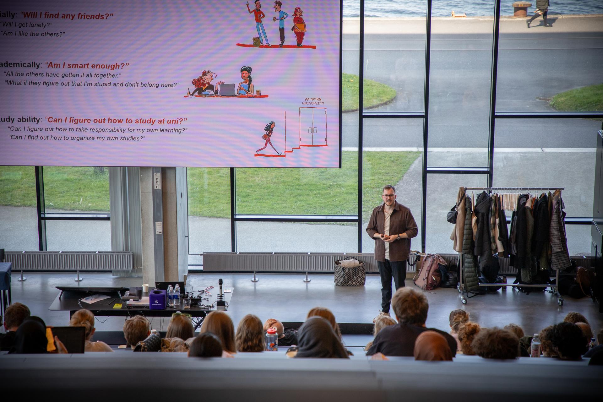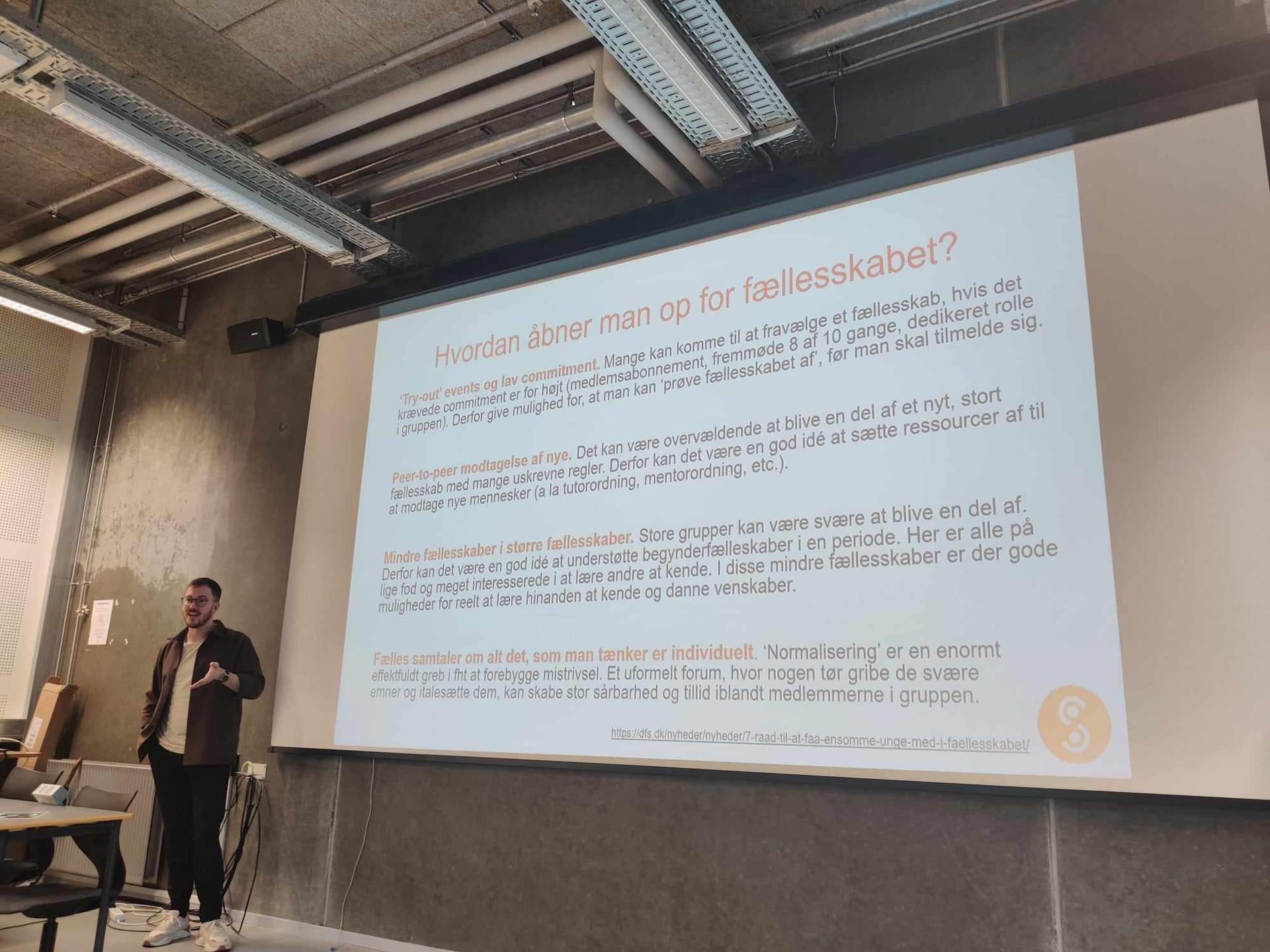 After the opening speeches, psychologist Johann Daustrand from the Student Counselling Service kicked off the day with a presentation that nuanced the common understanding of community, including ideas like expectations for the community, what the community should be able to do for the students, and what students should be able to do in it.